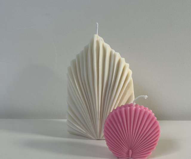 Bougie en forme de coquillage. Création artisanale en cire végétale de colza et mèche de coton